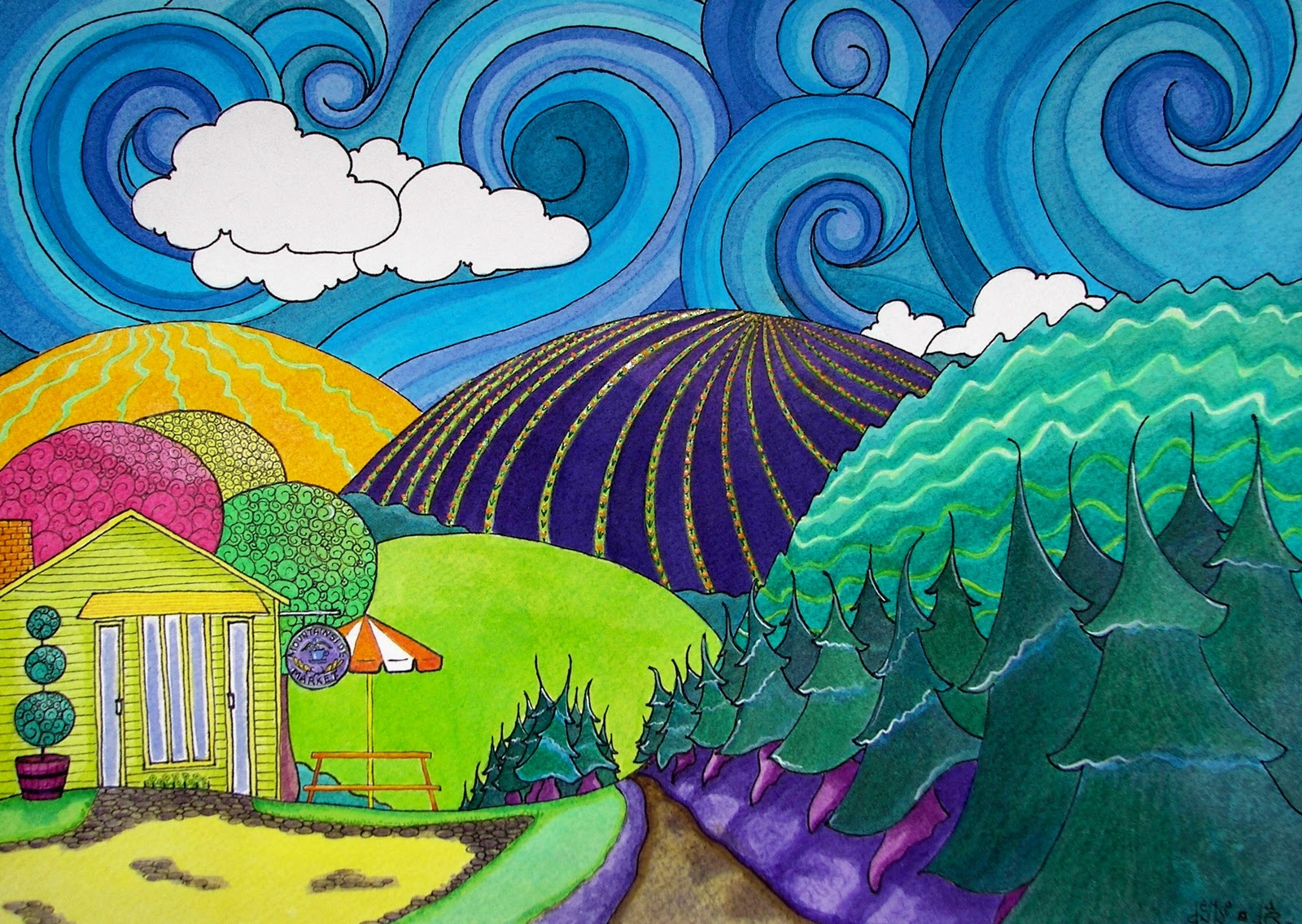 My themes are often the places around me; all I see here in my little Wonderland. The colors I choose are instinctive and seem to communicate the love and happiness I truly feel for this place. While I have always painted these scenes simply for my own pleasure, it has been shocking to see that my creations seem to resonate deeply with viewers and evoke joyful, happy emotion in them. I am both humbled and honored to give joy to others through my artwork.